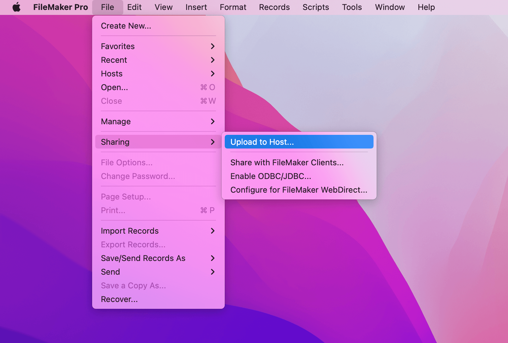 Kun FileMaker Server on käyttövalmiina, sovellukset voi ladata palvelimelle FileMaker Prolla ”Upload to Host” toiminnolla. Ennen palvelimelle lataamista sovellustiedosto kannattaa tietoturvallisuuden vuoksi salata. Salauksen voi tehdä FileMaker Prolla. Salauksen jälkeen tiedosto on valmiina ladattavaksi palvelimelle. Kun tiedosto on ladattu palvelimelle, se avataan käyttöön FileMaker Serverin www-sivulta, johon syötetään mahdollinen salausavain.